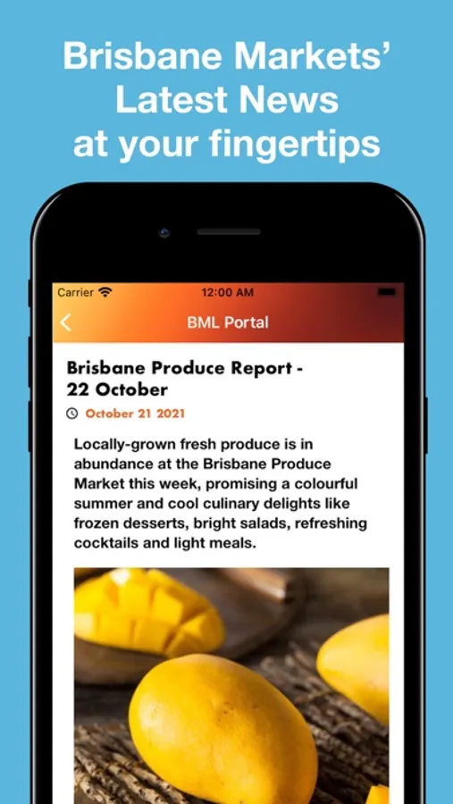 The Brisbane Markets App is designed to offer users quick access to news, bulletins, maps and contact details for tenants operating within the markets.