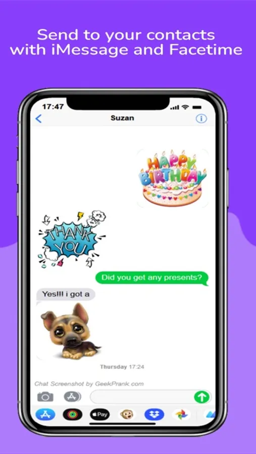 Unlimited access to high-quality stickers, send many different styles and types of stickers to family and friends to enhance your messaging experience. Express yourself through every kind of expression and emotion. Use the entire sticker library as many times as you want, whenever you want and always find the right sticker to share with family and friends.