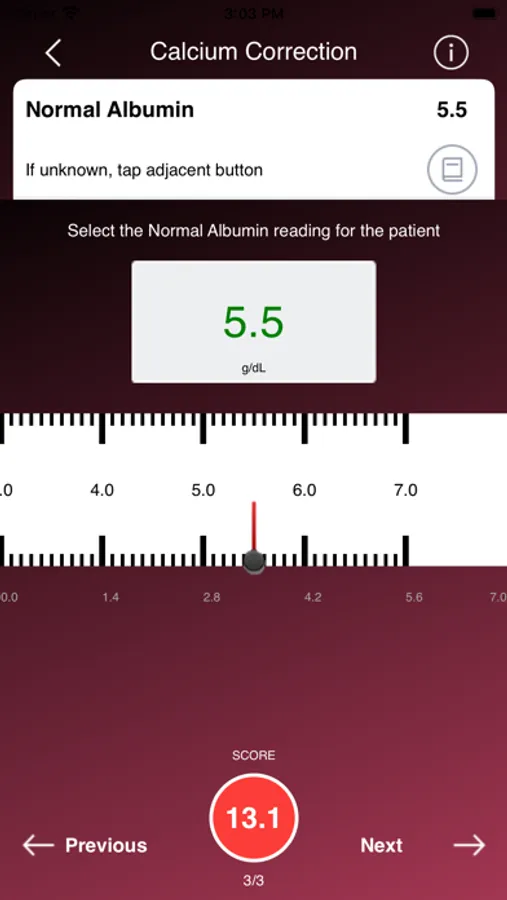 From the creators of the original iOS Clinical Diagnosis App range comes "Calcium Correction for Hypoalbuminemia", an interactive medical calculator that helps Endocrinology Specialists and General Medics alike to adjust a patient's calcium reading based upon their albumin level.