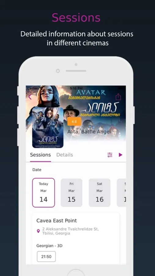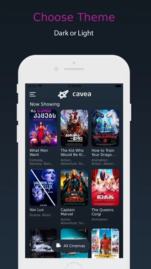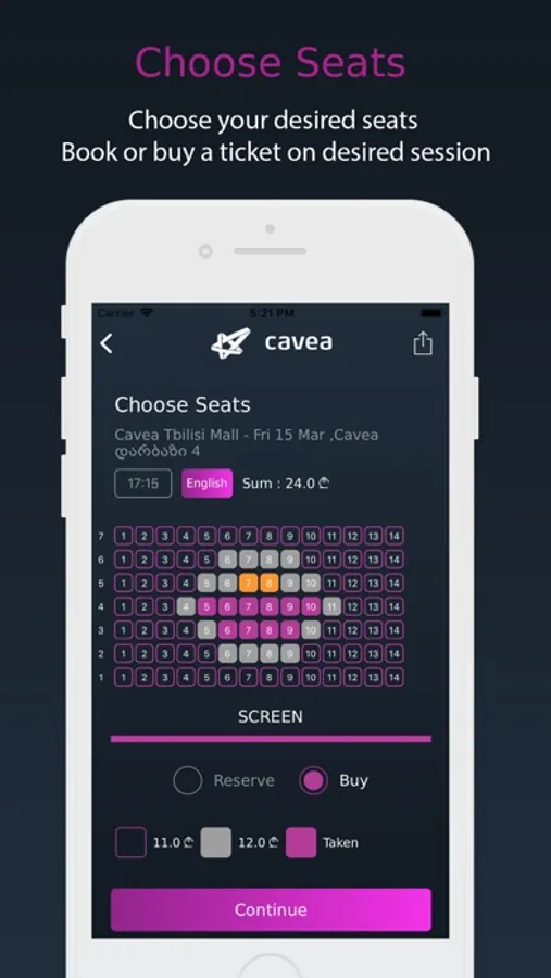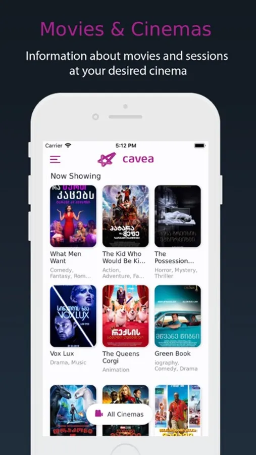 App of chain of movie theaters Cavea Cinemas. Buy, Book tickets, check sessions, watch trailers and many more.