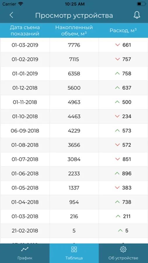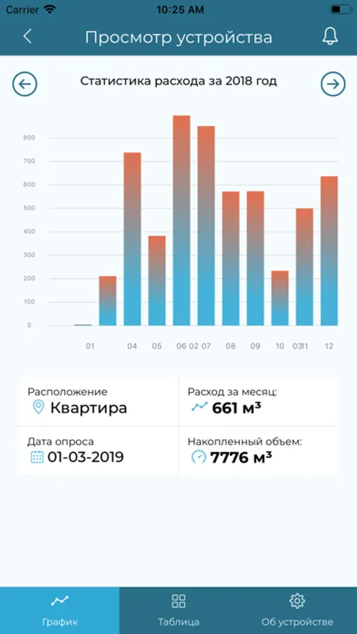 - графики и таблицы показаний с детализацией за период и наглядной динамикой изменений;