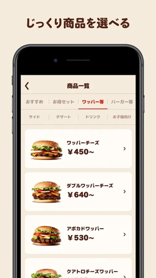 最新の商品、キャンペーン情報等がホーム画面に表示されます。