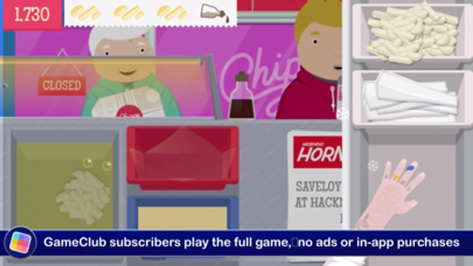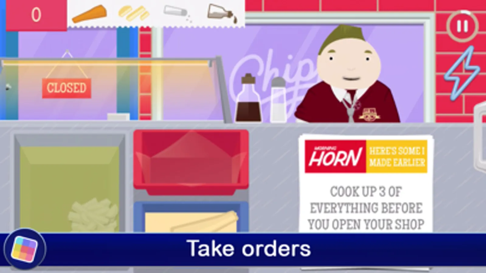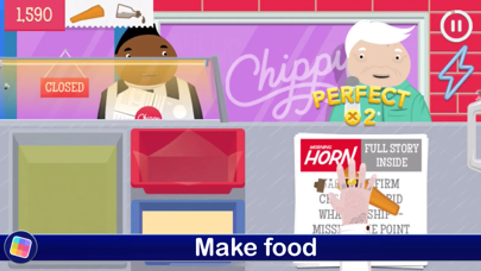 It’s up to you to serve the customers as they come into your Chippy. Time-management is the key to success! Take orders, get cooking and try not to burn anything in this fun food game featuring a cast of colorful characters, simple one-touch controls and nostalgic soundtrack.