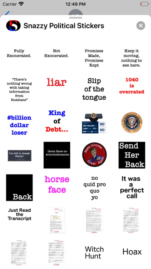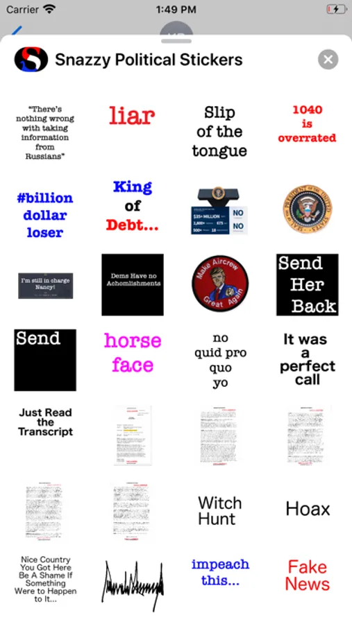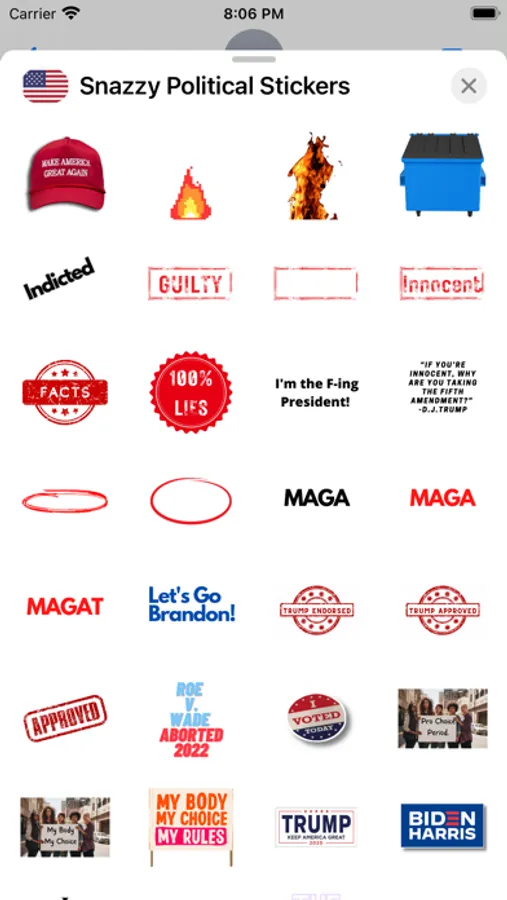 Our political stickers are designed to be both informative and fun, making it easy to express your views in a lighthearted way. With our app, you can show your support for your favorite political causes, candidates, and movements, or make a bold statement on current events.