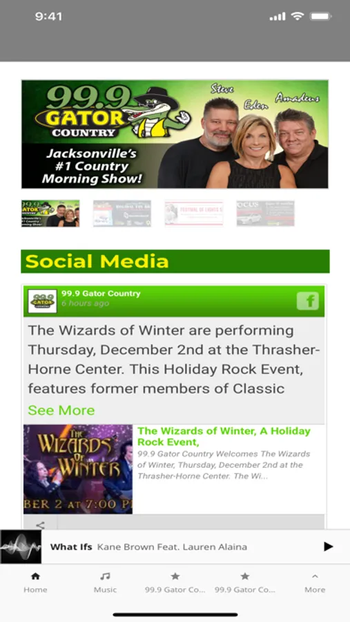If you enjoy the hottest country music, breaking news, and exciting contests, then Gator Country is the radio station for you! 99.9 Gator Country WGNE-FM is a commercial FM radio station serving the Jacksonville metropolitan area. It is owned by Renda Broadcasting and airs a country music radio format.