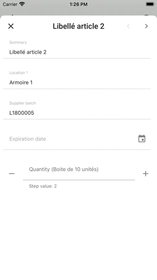 - Check the products by entering the quantity or by incrementing it according to a step defined per item (example: incremented by 5);