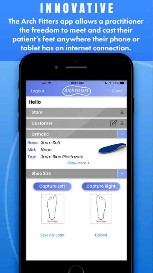 Mobile app for casting feet and building orthotics. Great for practitioners who see patients in multiple rooms or make house calls. Being able to upload using a cellular data plan, extends the ability to upload to those who may be out of range or have poor WiFi connections. The basic options are front and center to make ordering simple orthotics fast and easy. Advanced options and notes section for custom orders are available and the menus are user friendly. For an all-in-one orthotic casting and ordering app, you can't do better than Arch Fitters!