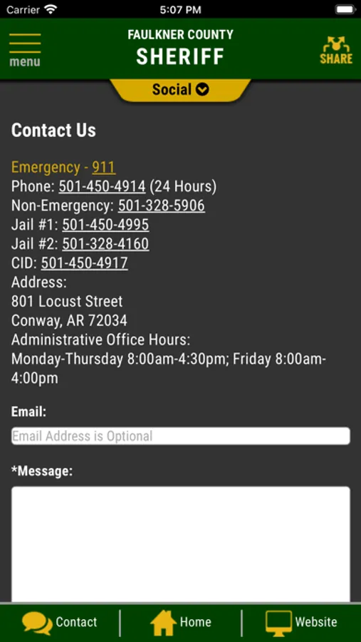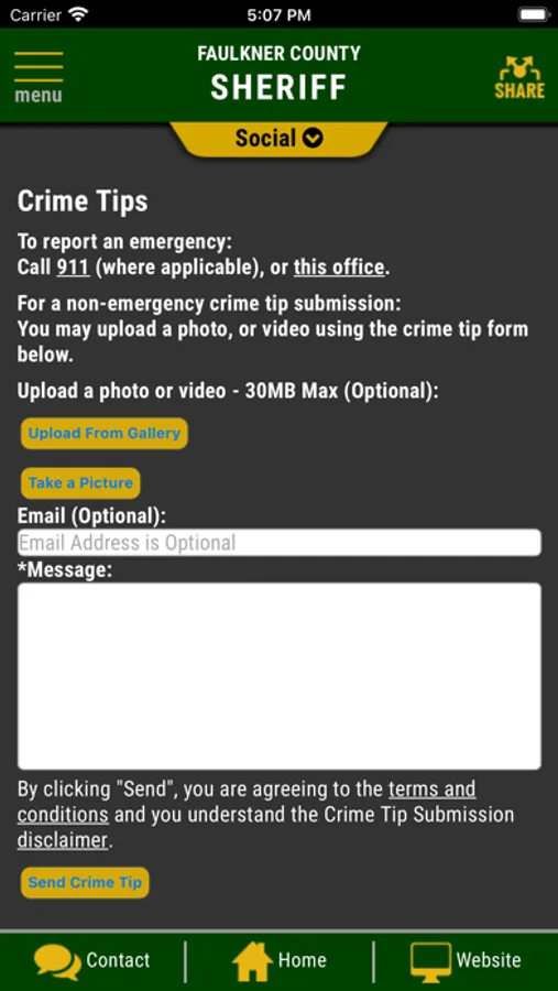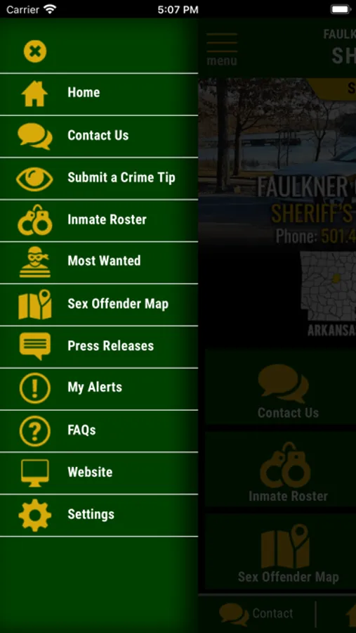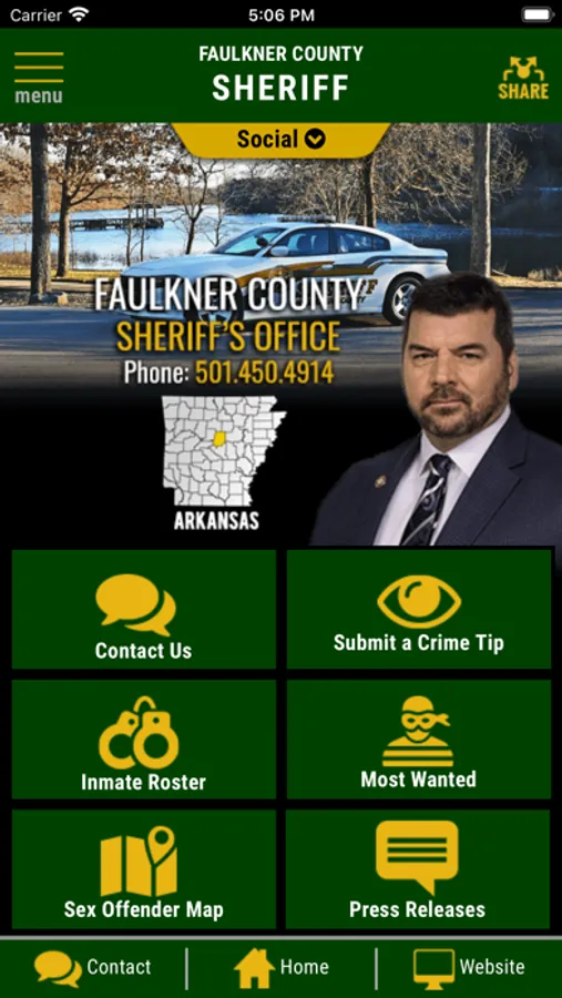 The app has public information for press releases, inmates, most wanted, sex offenders, special alerts, and FAQ's. Crime tips and contact us messages can be sent to the S.O.