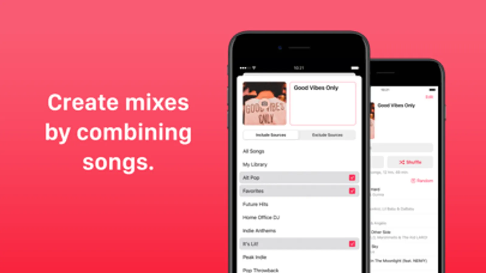 Simply tap the playlists you want to include (or exclude) in your mix. Duplicate songs are removed automatically.