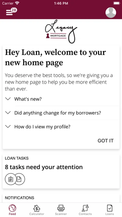 The Legacy app improves the mortgage process by keeping you in the know with real time loan status updates, mobile document scanning, and keeping you in contact with your loan officer. Our process is fast and efficient, with the help of our app you can calculate savings/cost of refinancing or estimate your possible mortgage payment on a new home. You can easily access all of your loan documentation with a click of a button!