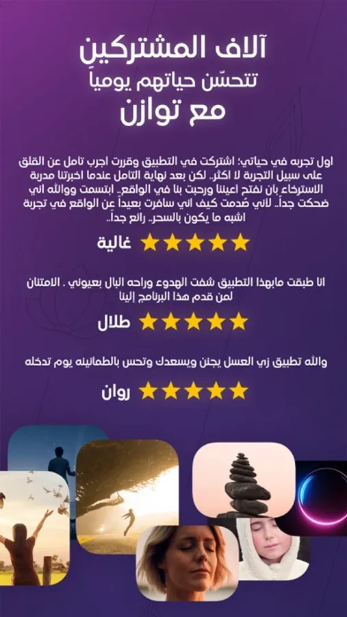 Tawazon is the world’s #1 application for meditation in the Arabic language, which offers mental training, and relaxation, as it takes you step by step into the world of meditation through short guided meditations from 5 up to 15 minutes.