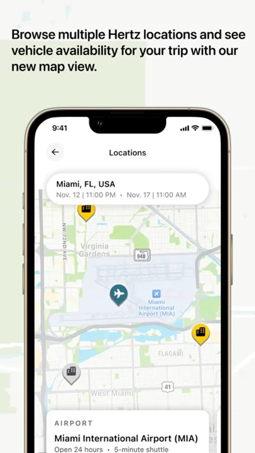 • Search in popular cities, and use the map view to browse the Hertz locations, showing availability in multiple locations.