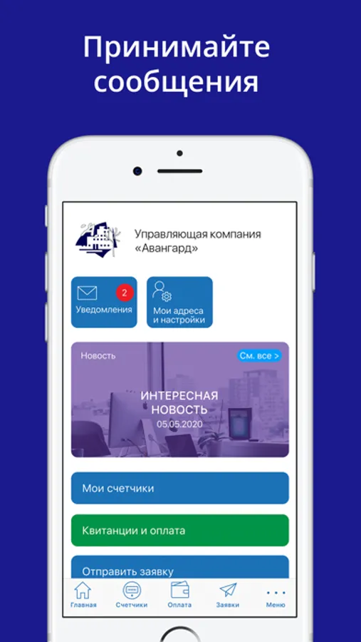 Отправляйте заявки с фотографиями, показания счетчиков, получайте важную информацию от управляющей компании!