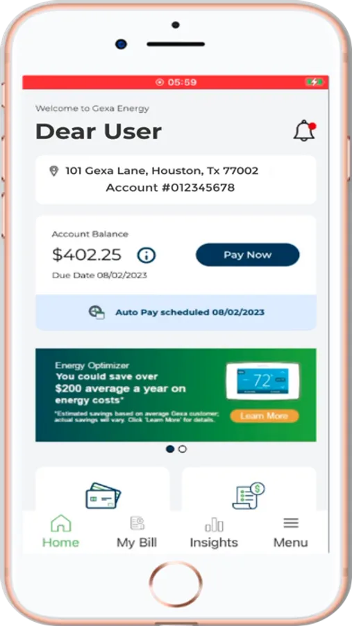 The Gexa Energy mobile app makes managing and optimizing your home energy usage simple. By integrating all of your connected smart devices, Gexa Energy plan, and Gexa Energy My Account, the Gexa Energy mobile app empowers customers to optimize their energy usage to meet their energy goals.