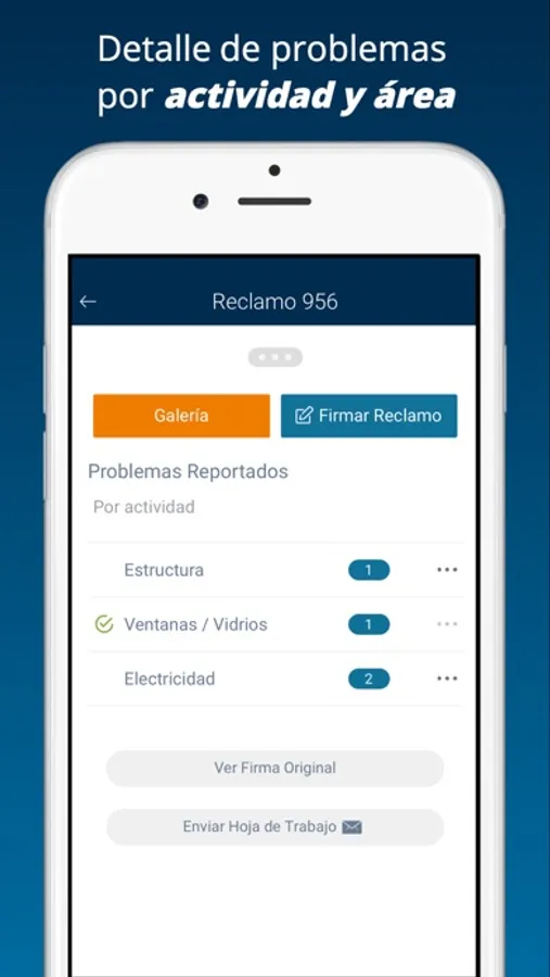 • Reportes de atención: Automatiza los procesos y ten todos los documentos listos para aprobación del cliente una vez finalizado el trabajo. WorkOrders, Punch-Lists, Hojas de Atención, y otros.