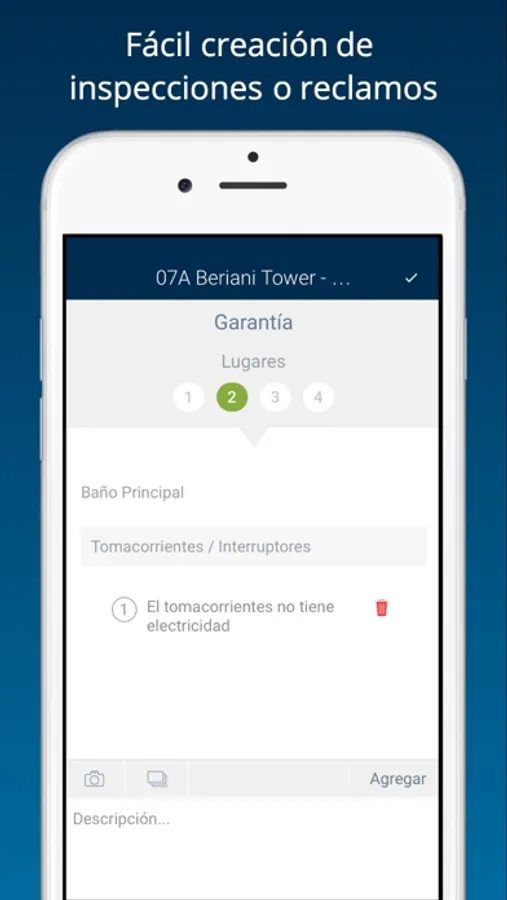 • Pre-inspecciones y Excepciones: Punch-list que te ayudará a hacer un registro de las revisiones el día de la entrega de la propiedad, y recibir aprobaciones en sitio por parte de los clientes.