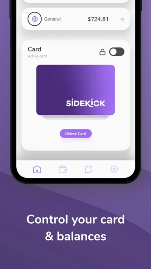 Did you misplace your card? You can instantly lock or unlock the card using the SideKick app. Access to the money is restricted until the card is found or a new card is added to the app.