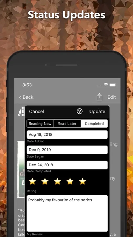 And finally, if you use an iPad as well as your iPhone, My Bookshelf has you covered. Install the app on your iPad and access the same information,. Update on one device and it is immedialy updated on the other.