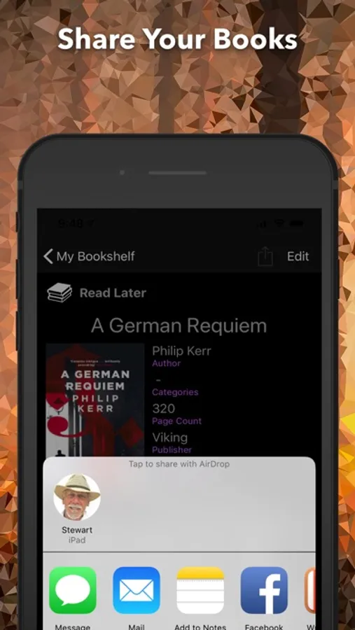Sharing your books is easy too as you can tap the share button and either Air Drop or email your friends. It will automatically go into their “To Read” bookshelf once accepted.