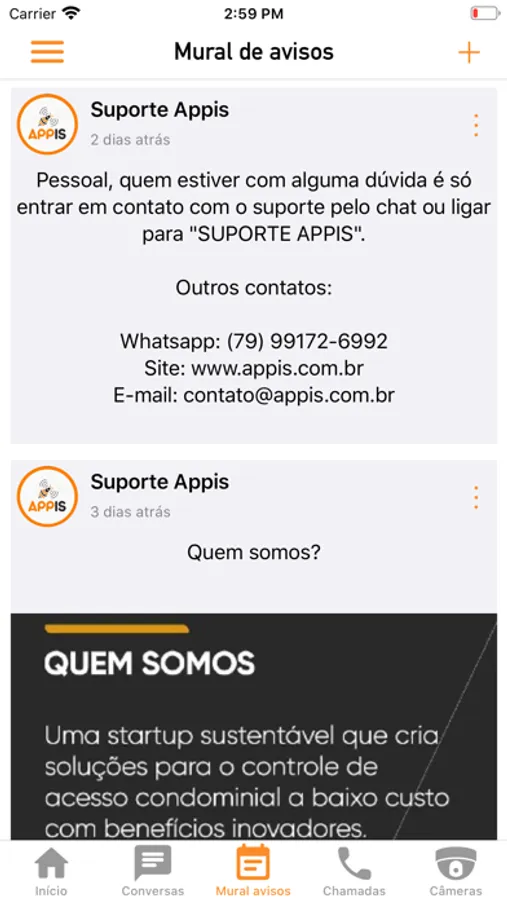 Interfone Virtual Appis é um aplicativo que permite a comunicação direta entre os condôminos, a gestão condominial e terceiros através de ligações. Com ele é possível comunicar, visualizar através do circuito fechado de televisão (CFTV) de quem se trata, e autorizar ou negar a entrada de pessoas às dependências do condomínio. Dentro do aplicativo também é possível a publicação pela gestão condominial de informativos e, por parte dos condôminos, de avisos, mensagens e oferta de produtos e serviços.