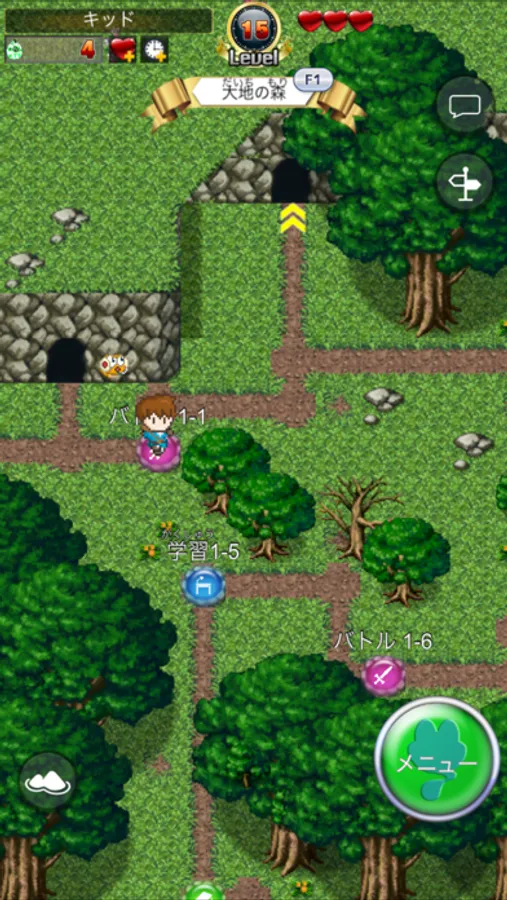 「英剣伝説」では、この繰り返しをゲーム内に取り入れています。豊富な種類の問題や、夢中になれるストーリーによって、飽きずに楽しく学習を続けることができます。