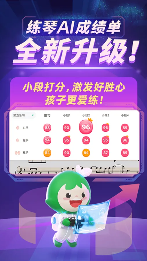 每次练琴都有打分,进步看得见,还能与全国千万琴童一起PK,练琴更主动!