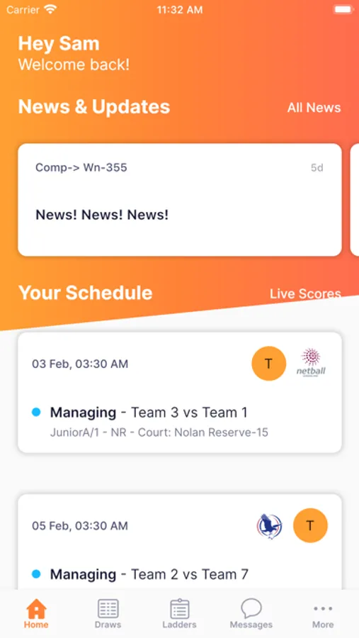 Spectators can now access real-time game scores, time, court location, draw and ladder updates instantly as well as receive notification and news from competition organisers.