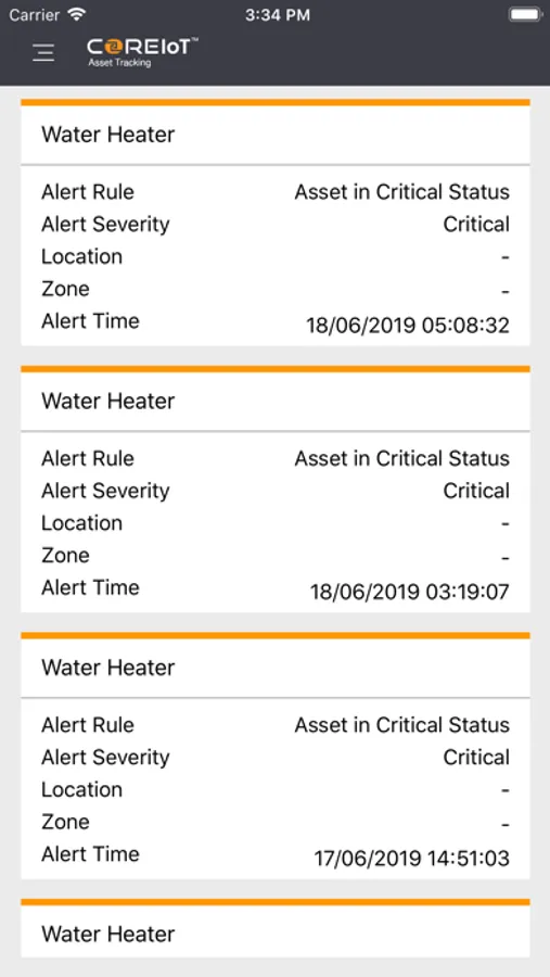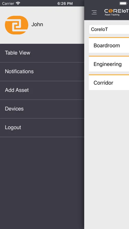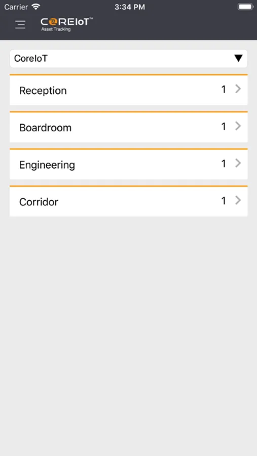 The COREIoT Asset Tracking app allows you to view the current location of your assets.