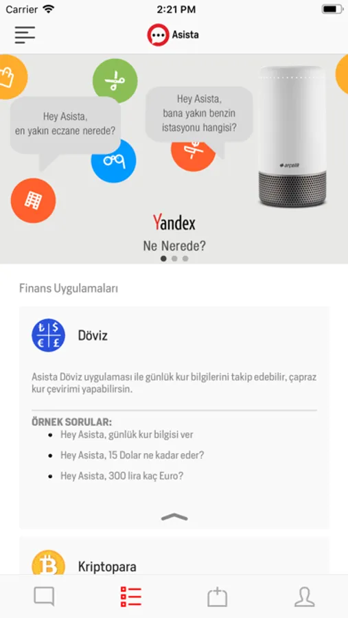 "Dünya'nın ilk ve tek Türkçe konuşan akıllı ev asistanı ile tanışın. Arçelik Asista sizi dinlesin ve sorularınıza cevap versin. Evdeki diğer akıllı cihazlara bağlayın, müzik dinleyin, ışıkları kontrol edin ve trafik durumunu öğrenin. Her gün daha da artan 50'nin üzerindeki uygulama sayısı ile sahip olduğu ekosistemi sayesinde hayatınızı kolaylaştırın. Uygulama üzerinden konuşma geçmişine bakabilir, yeni uygulamalara göz atabilir, ve kişisel bilgilerini düzenleyebilirsin.
