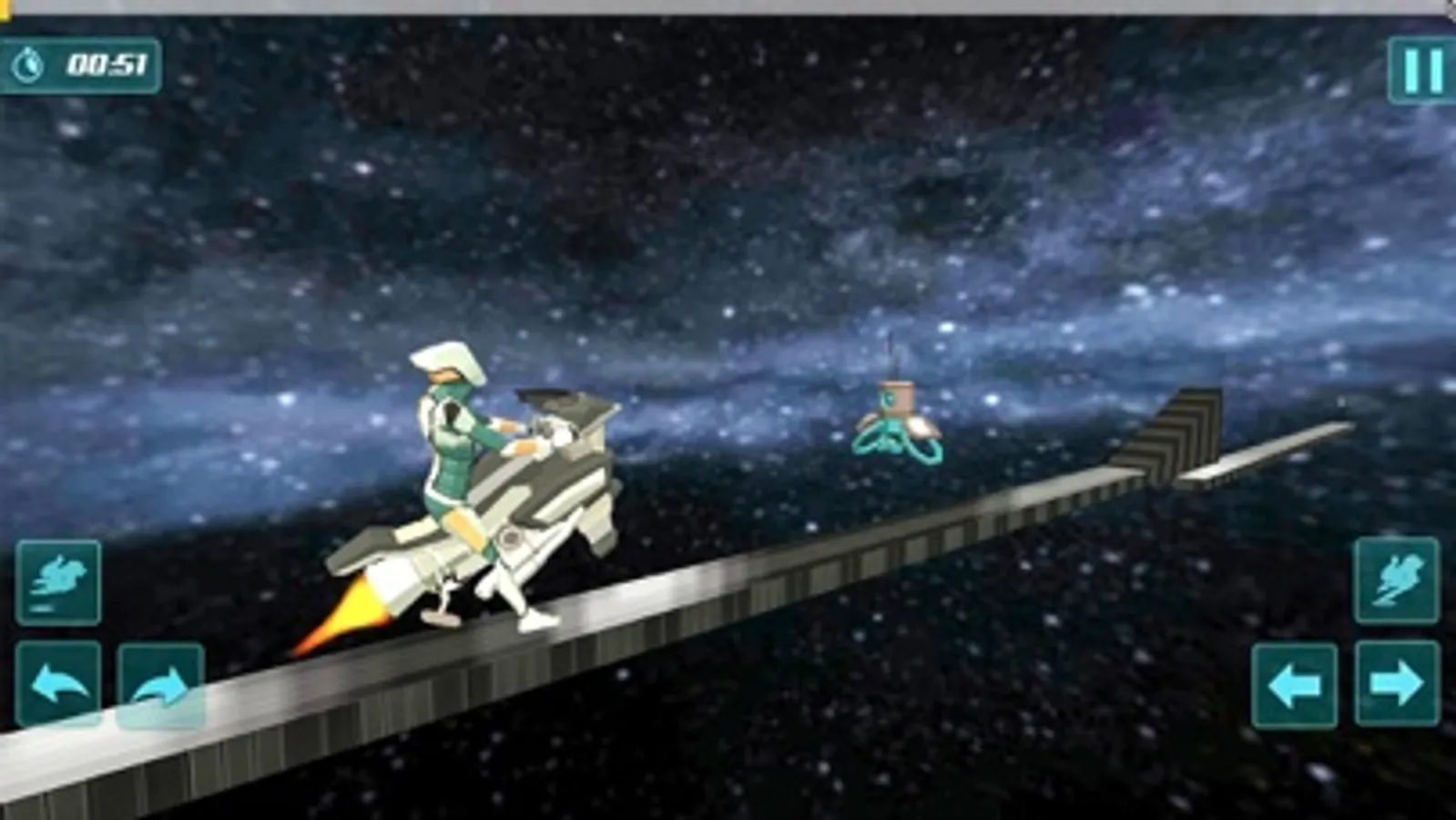 Take a grip on the hoverbike and do sensational stunts on sky tracks. Avoid being crushed by the hurdles that you will face while passing through the galaxy tracks.