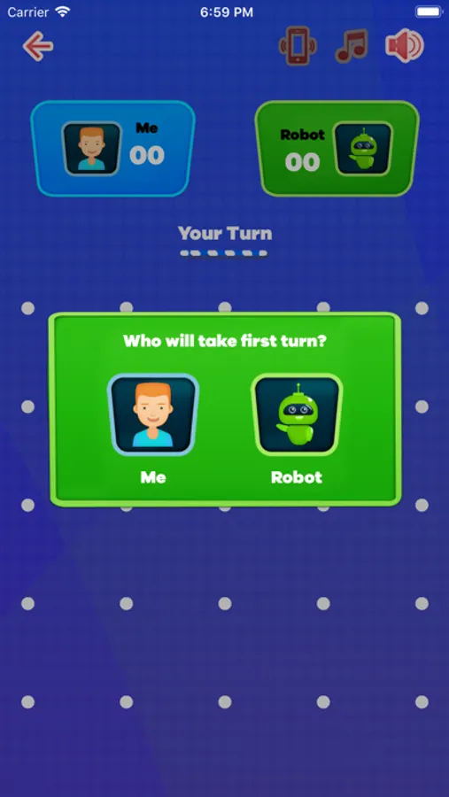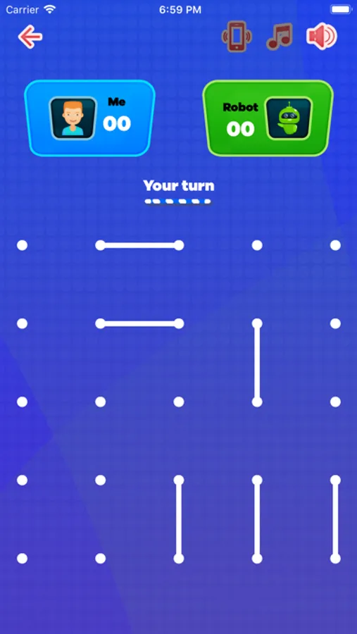 - Start your first move by selecting a space between two dots on the grid to create a line.