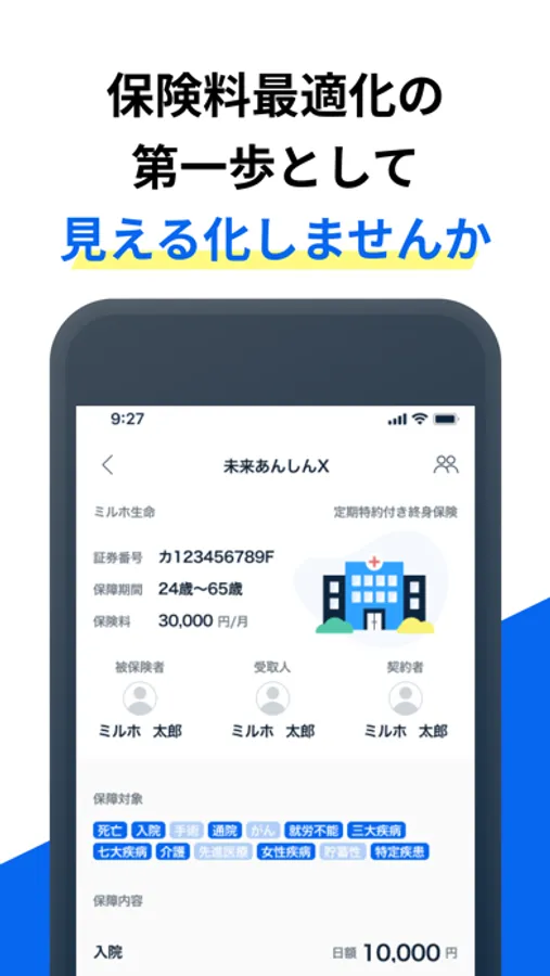 機能①保険証券を撮影するだけで、保険の内容を見える化!