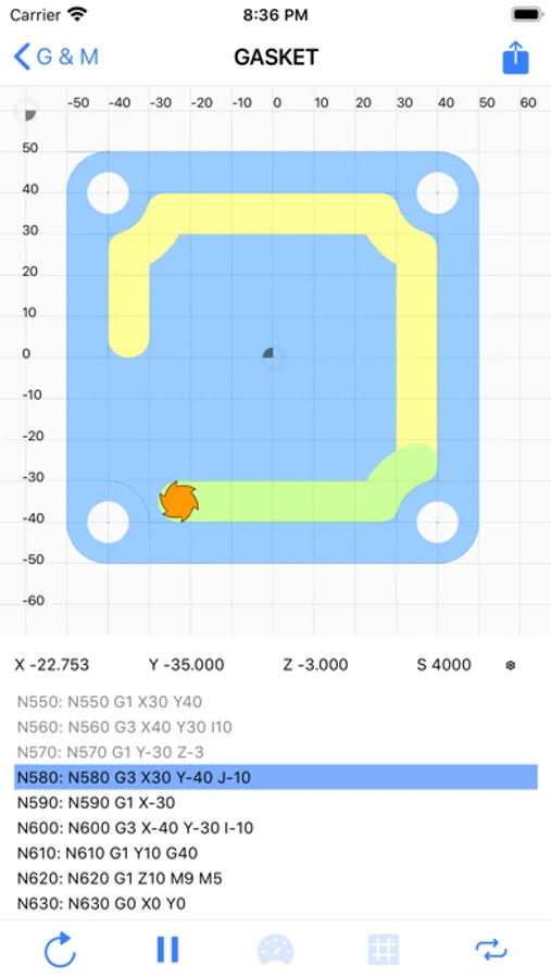 In Simulator view, tap the Share button to save or share your code using any of the common sharing methods.