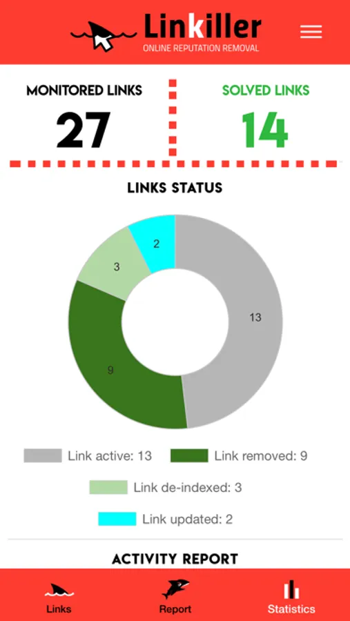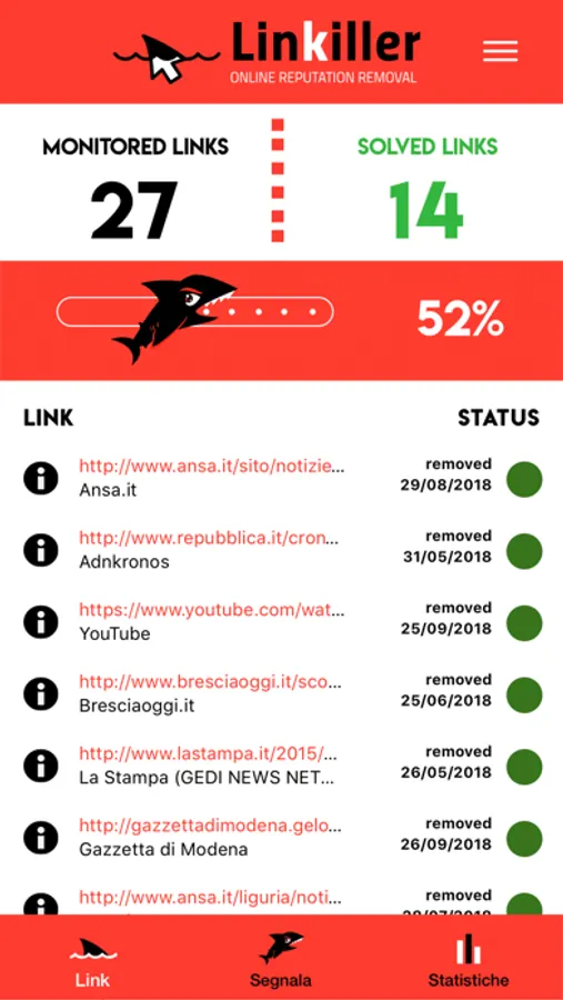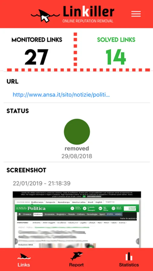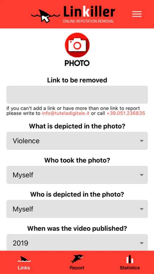 LinKiller, Tutela Digitale’s app, allows its users to report online unwanted content in order to have them removed from web or de-indexed them from search engines such as Google.