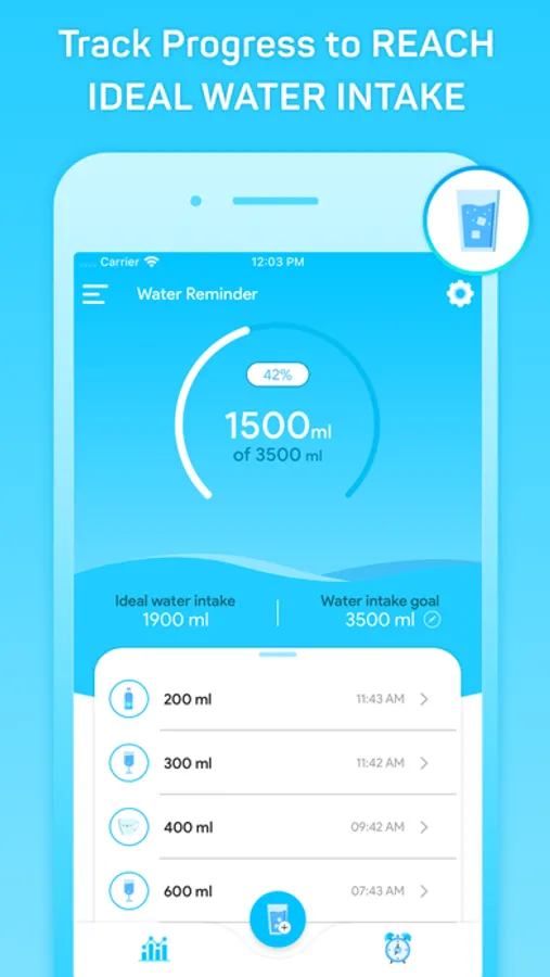 You can also take a back up of water intake chart. So if you change your device then also you can keep a track on your daily water intake goal!