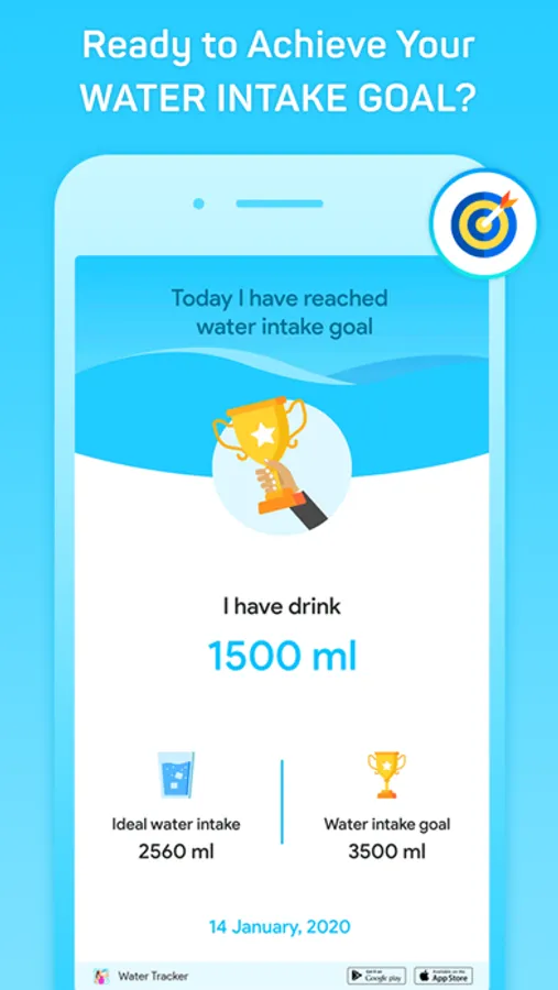 Track your achievements regularly and try to become a winner! Show it to your near and dear ones & give them a water challenge!