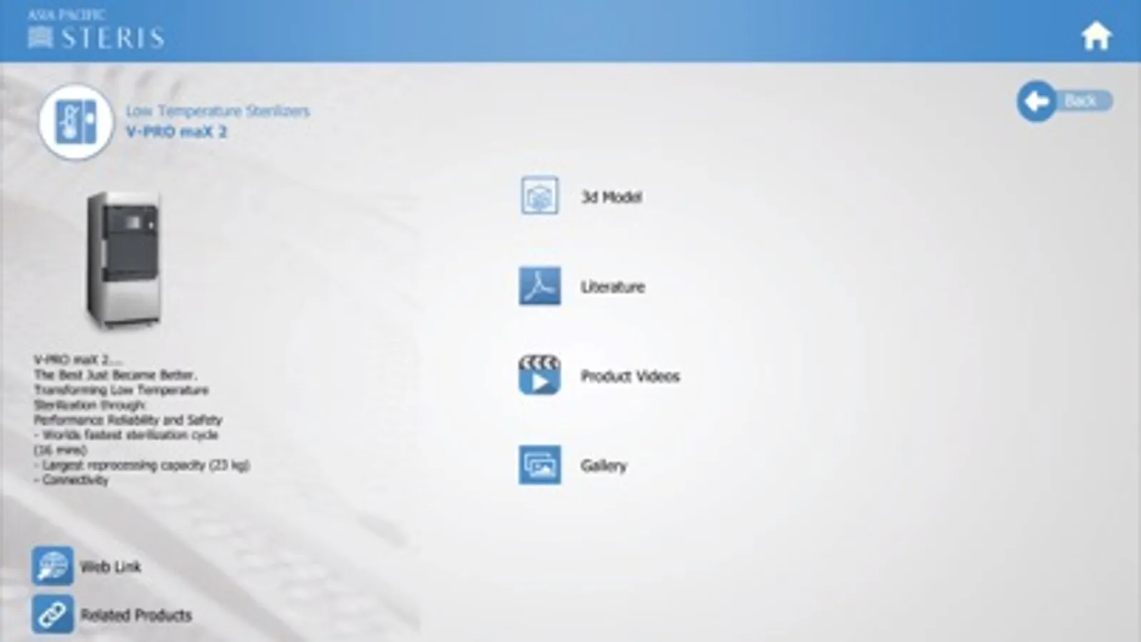 STERIS IPT Connect APAC is a sales and customer support application offering access to 3D models, technical data, brochures, user manuals and images for the complete portfolio of Infection Prevention Technologies from STERIS. This information has been selected to be relevant to APAC markets and relevant local guidance and regulations.