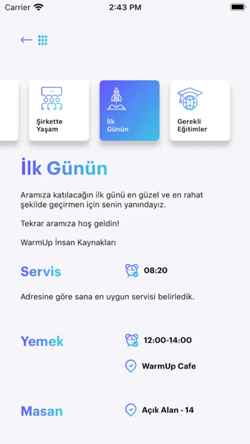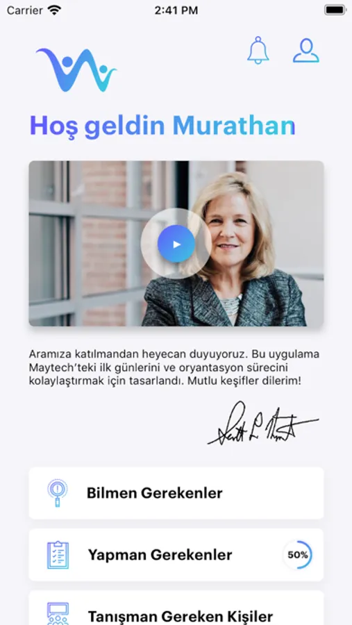 WelCalm, çalışanların işe giriş sürecini kolaylaştırmak için ihtiyacı olan tüm bilgilere, kontaklara, eğitim videolarına erişebildiği mobil uygulamadır.