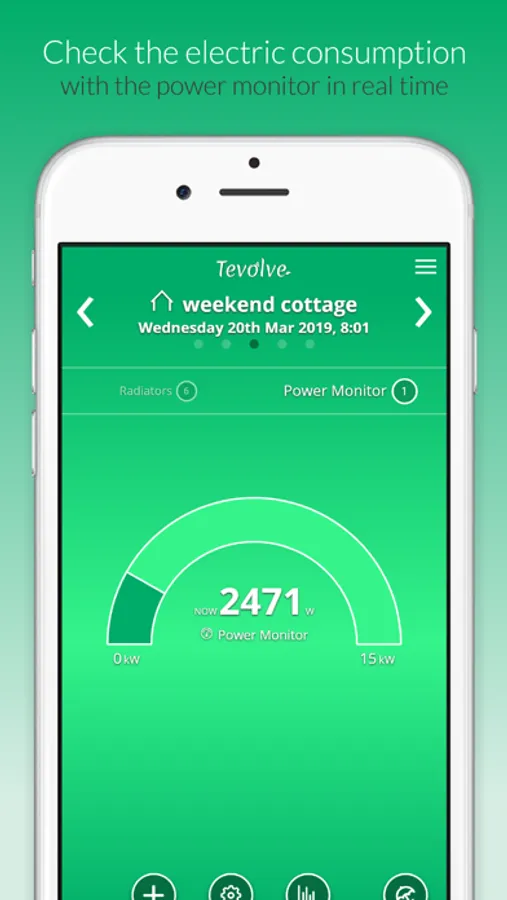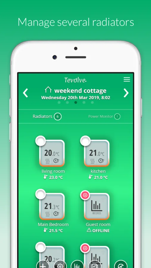 "Tevolve" application allows you to control your heating system from any place and at any time via Internet connection. You can turn on, turn off or modify your devices (radiators, power monitor) in all your homes from the same account.