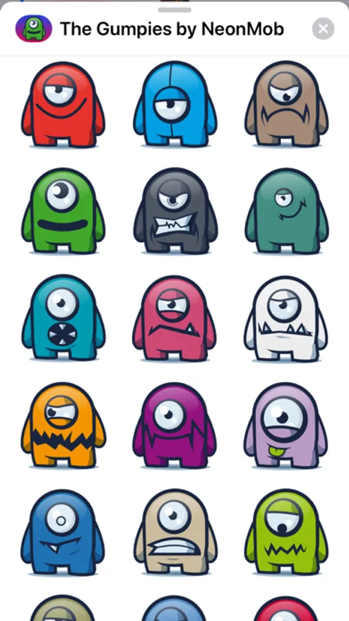 The Gumpies is your one stop shop for all one-eyed monster stickers. This sticker collection is brought to you by NeonMob, a digital art and collecting game. The artist Jordy te Braak invented this whole universe of Gumpies. Share some of them with your friends today!