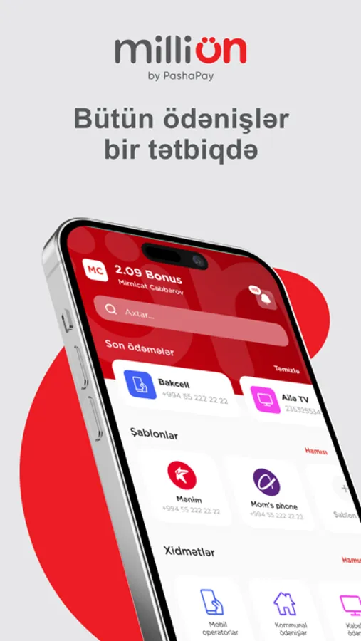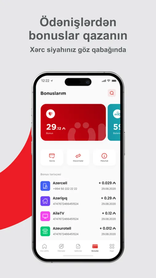 İstənilən xidmət üzrə ödəniş edilən zaman bonuslar qazanırsınız.