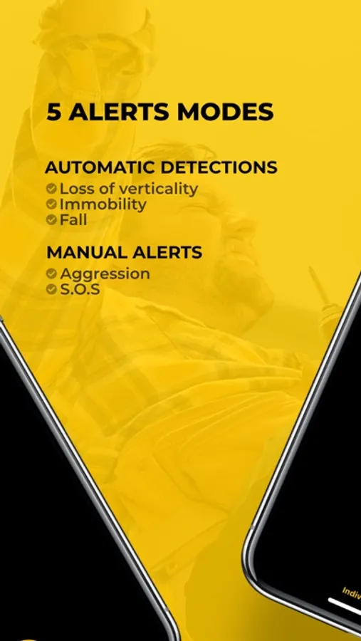 The free version offers 3 automatic detection modes and a SOS button. In case of an alert, your smartphone sends a text message to the contact number of your choice.