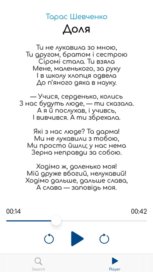 Poem Library - is a unique app, that helps you to learn lyrics of hundreds of poems of Ukrainian literature and read the most important information of the authors. Prepare yourself for the next literature class or exam. The whole Ukrainian literature at a hand!