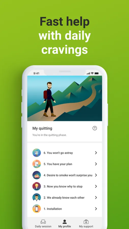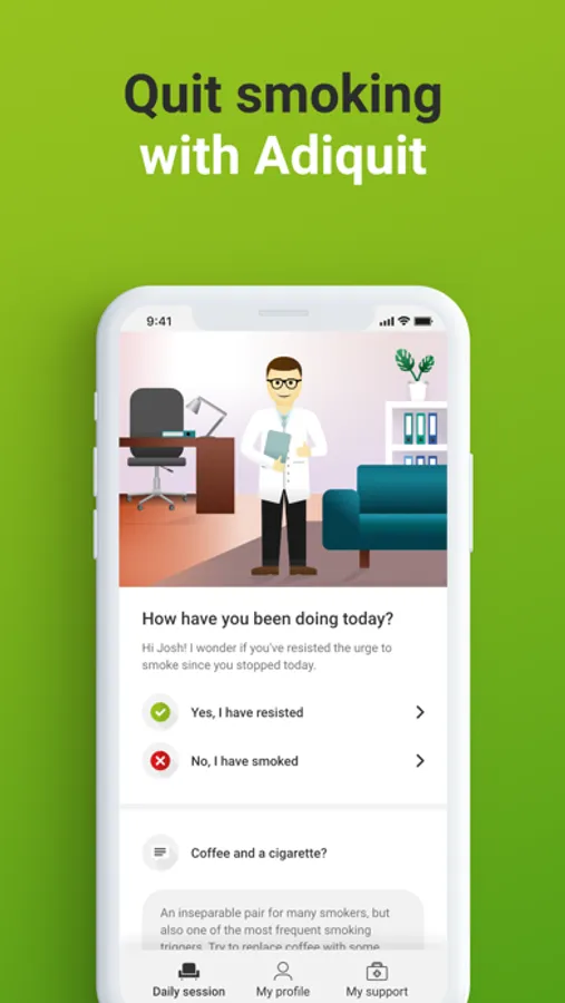 Adiquit is the only app based on scientific knowledge and real clinical practice. A virtual therapist provides professional guidance during the quitting process and helps smokers to overcome withdrawal symptoms.