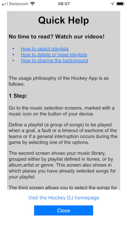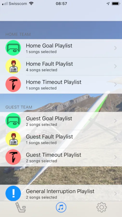 Hockey DJ is an application that makes it very easy to play music on different types of interruption during a hockey game.