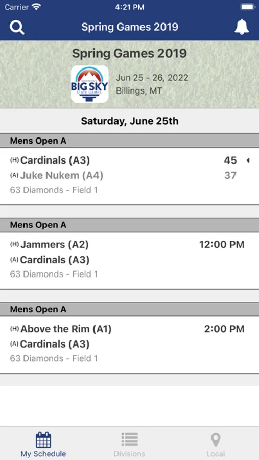 Follow our events and stay connected by viewing schedules, scores, brackets, and receiving notifications real-time.