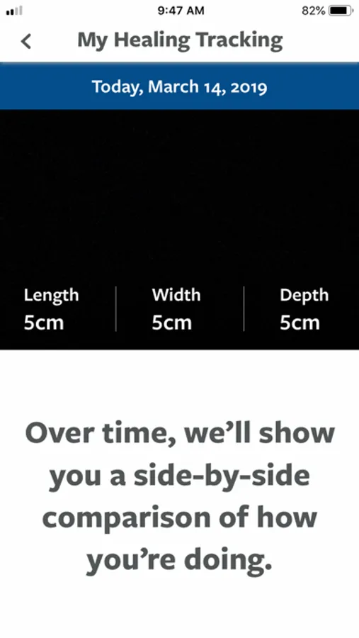 • My Healing Tracking: Take a photo of your wound and over time, we’ll show you a side by side comparison of how you’re doing.