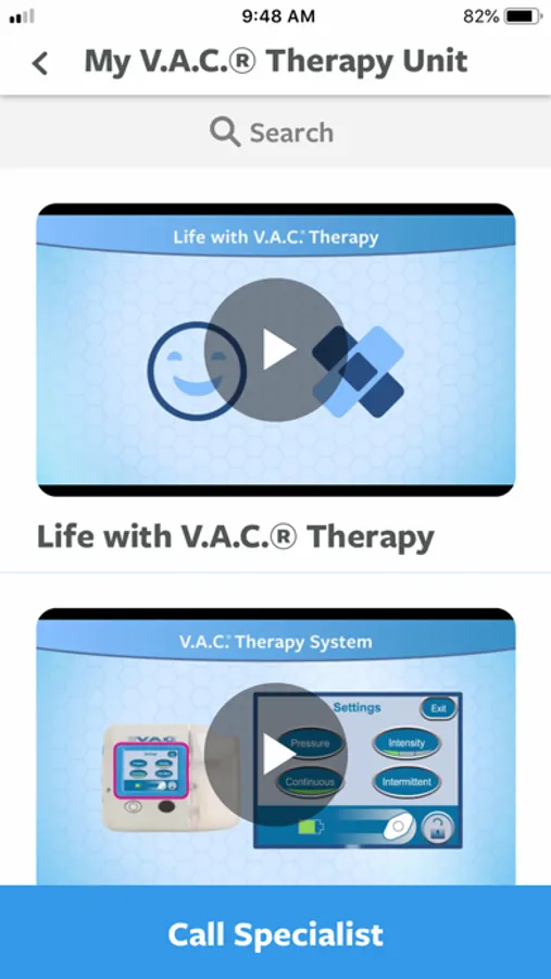 • My V.A.C.® Therapy History: View your V.A.C.® Therapy usage. Check your progress over the last six days and see the whole usage history.