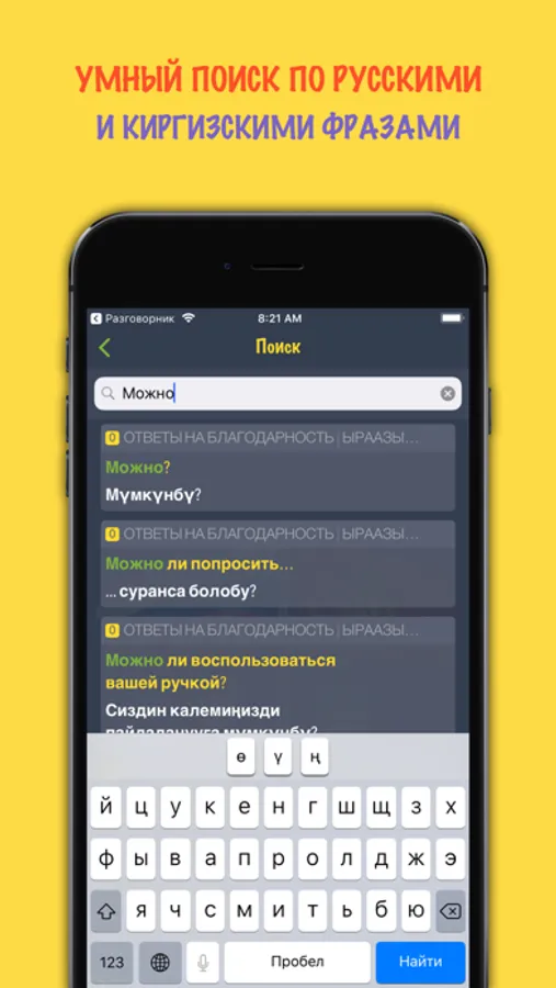 Если с вами планшет или смартфон, то любое путешествие станет комфортным, даже если вы не знаток киргизского или русского языка. С новым разговорником понять собеседника и правильно выразить свою мысль - проще простого.