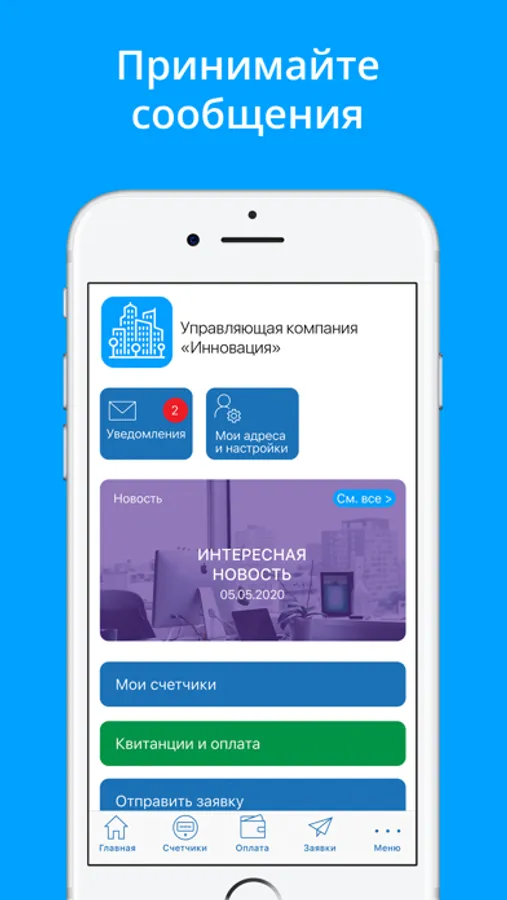 Отправляйте заявки с фотографиями, показания счетчиков, получайте важную информацию от управляющей компании!